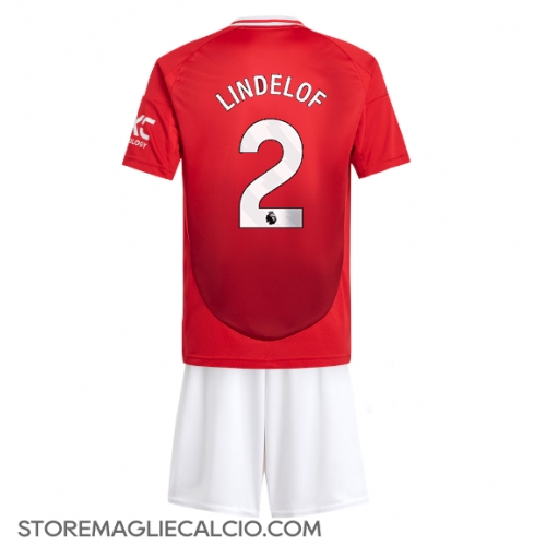 Manchester United Victor Lindelof #2 Maglia Gara Casa Repliche 2024-25 Bambino Maniche Corte